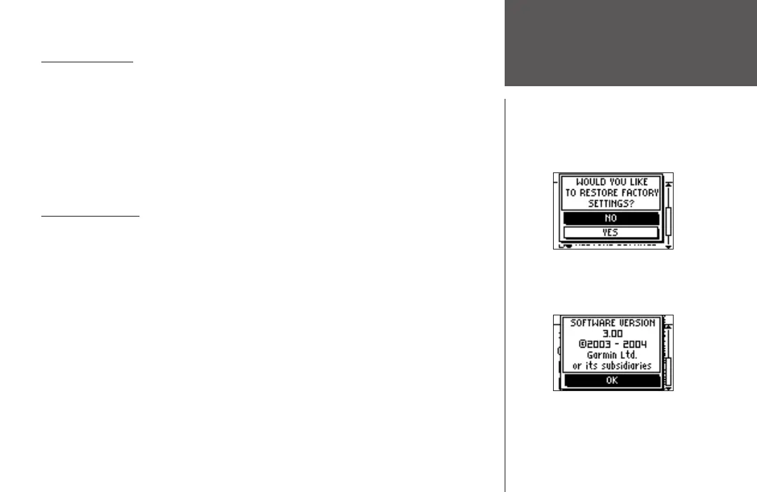 This option allows you to restore the factory settings to options in the SETTINGS menu