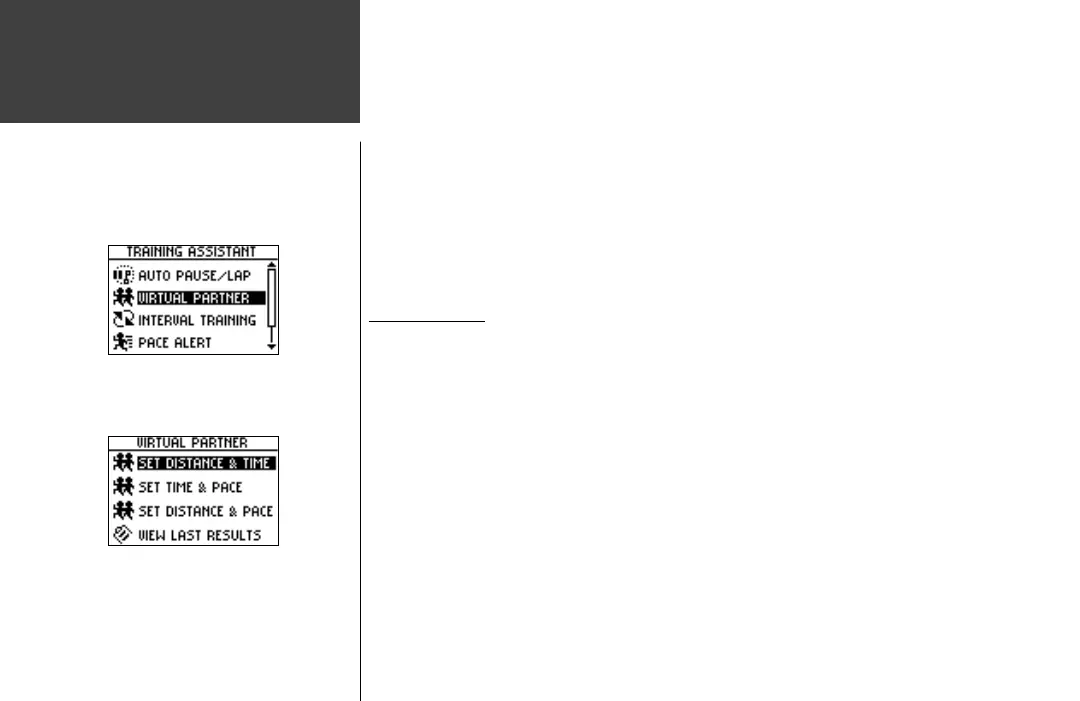 off you are from your Virtual Partner. Press the DOWN or UP button to view other data in