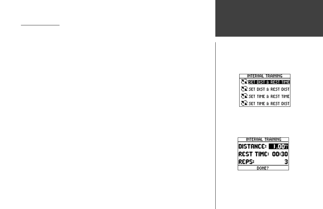 1. From the Training Assistant menu press the DOWN or UP button to highlight ‘INTERVAL