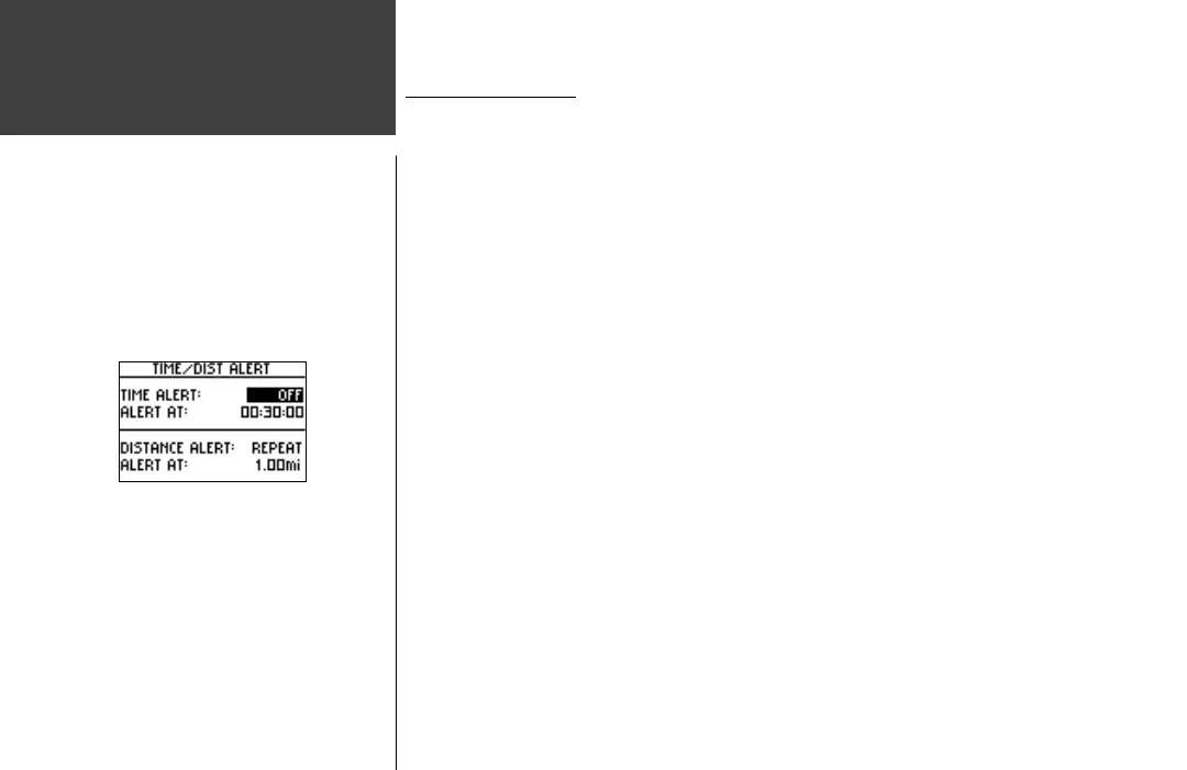 2. Highlight ‘TIME/DIST(ANCE) ALERT’ and press ENTER.