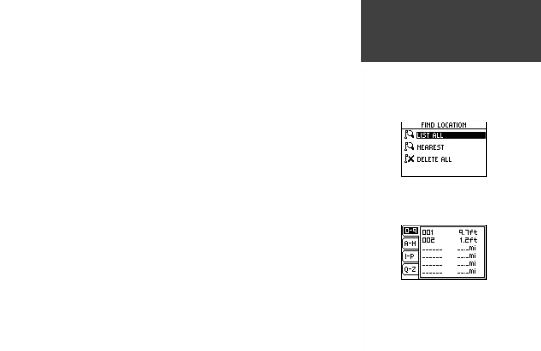 1. In the Review Location mode, press the DOWN or UP button to highlight ‘DELETE’. Press