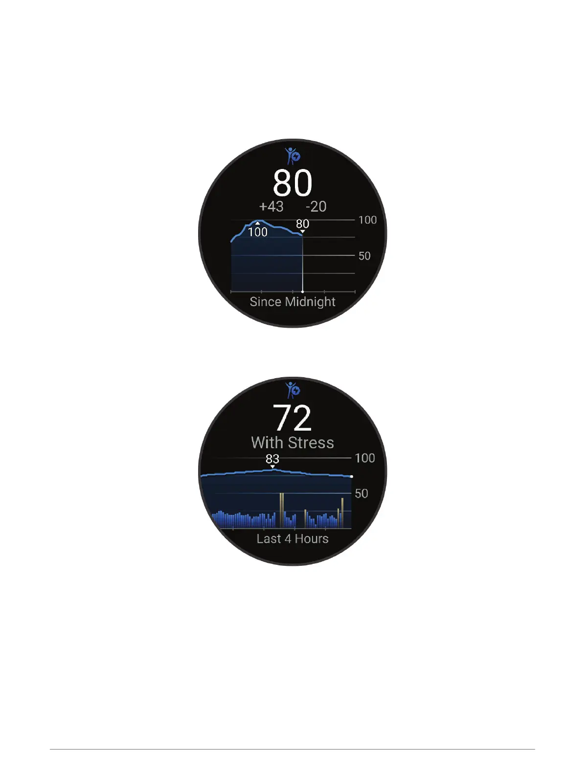 • Strenuous activity and high stress can cause your Body Battery to drain more quickly.