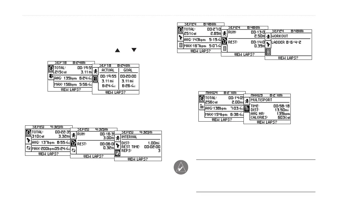 NOTE: To view workout details for each sport in a