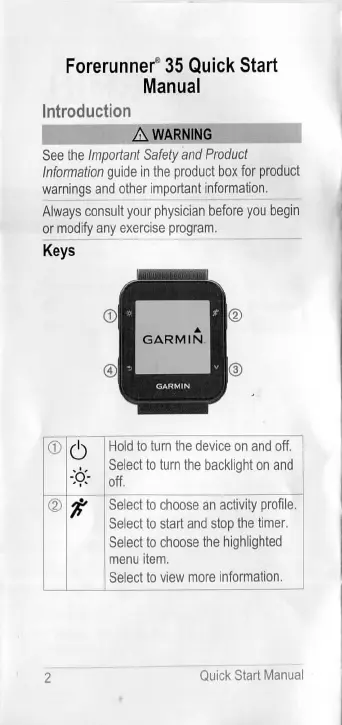 Garmin Forerunner 35 - Important Safety and Product Information; Health Warnings