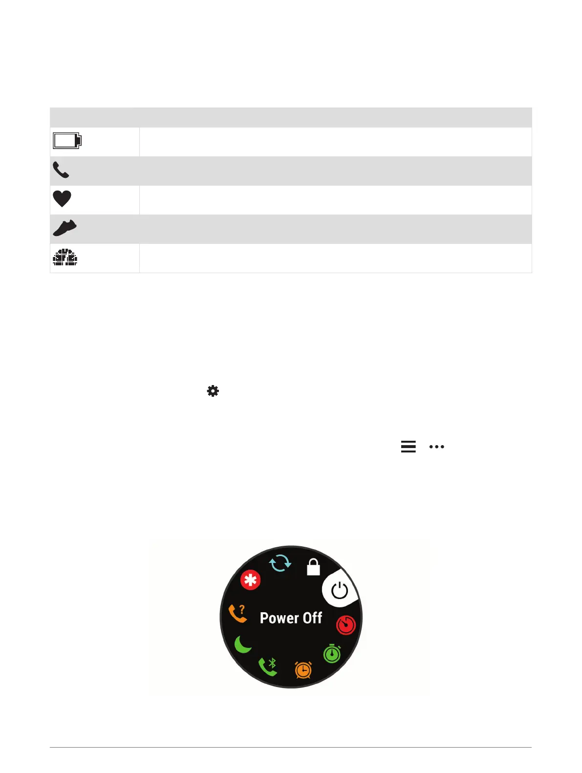 The GPS status ring and icons temporarily overlay each data screen. For outdoor activities, the status ring turns