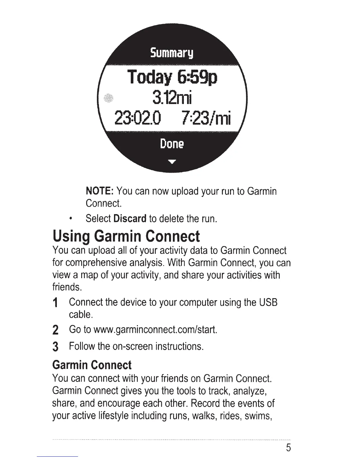 Garmin Forerunner 620 - Attaching the Heart Rate Monitor (HRM); Run Summary: Start, Stop, Save and View