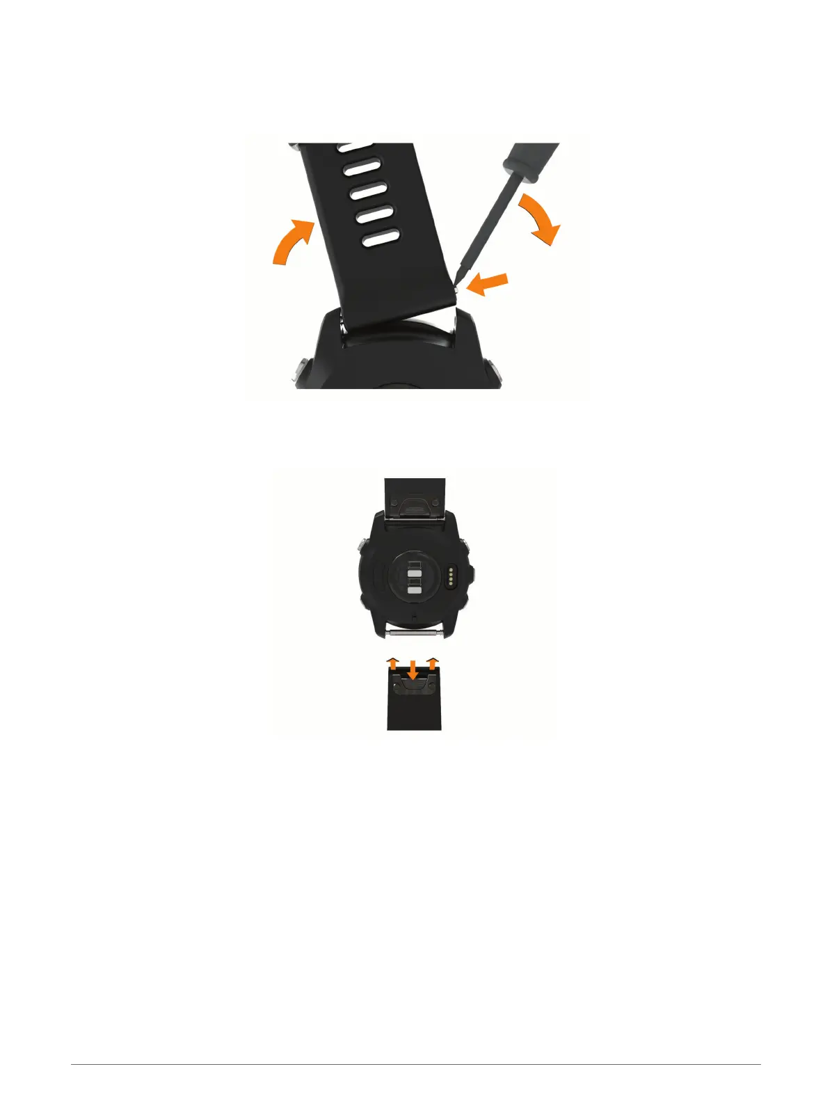 • To install QuickFit 22 bands, remove the watch pin from the Forerunner band, replace the watch pin on the