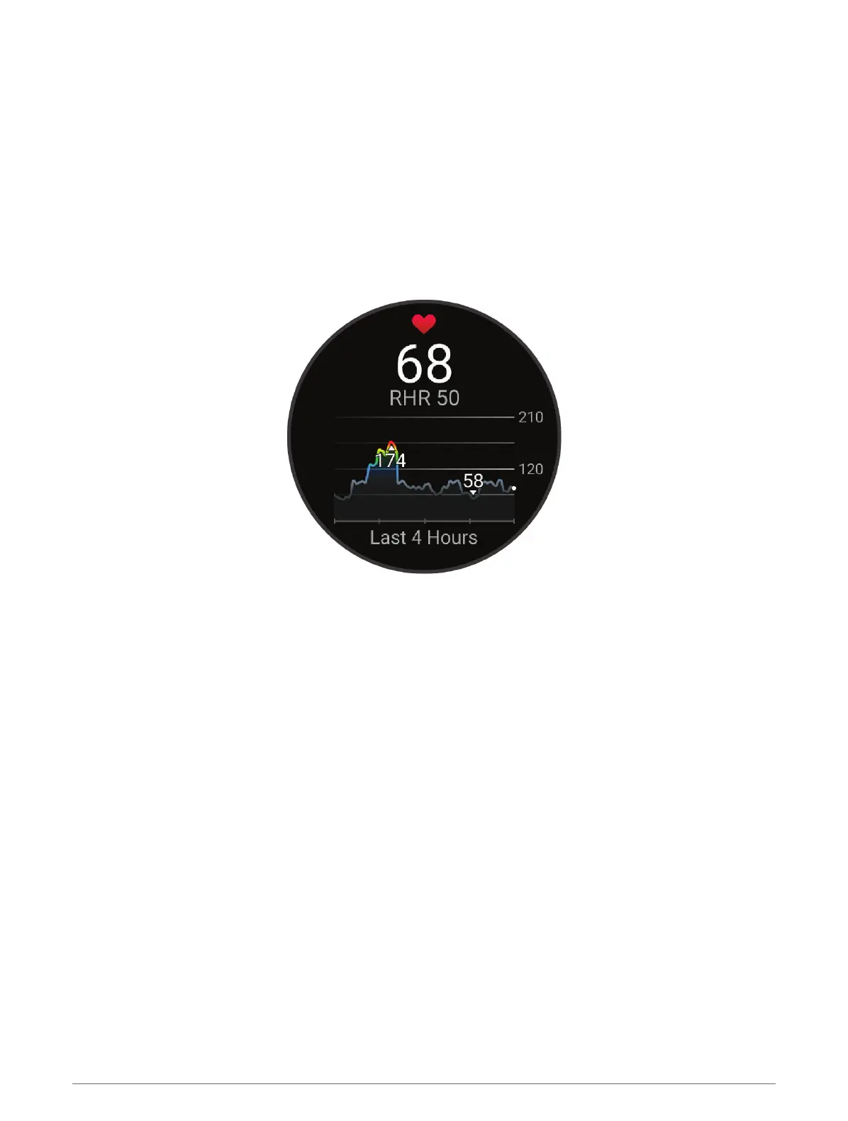 4 Press DOWN to view your average resting heart rate values for the last 7 days.