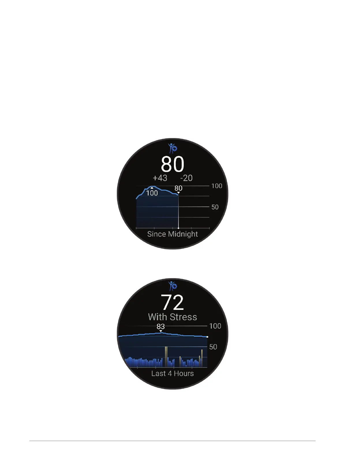 3 Press DOWN to view a combined graph of your Body Battery and stress levels.
