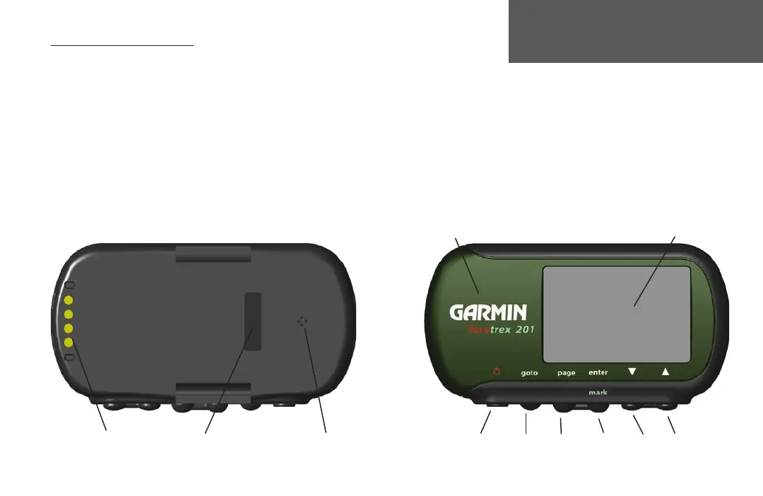 The images below describe the buttons and some features of your Foretrex 201.