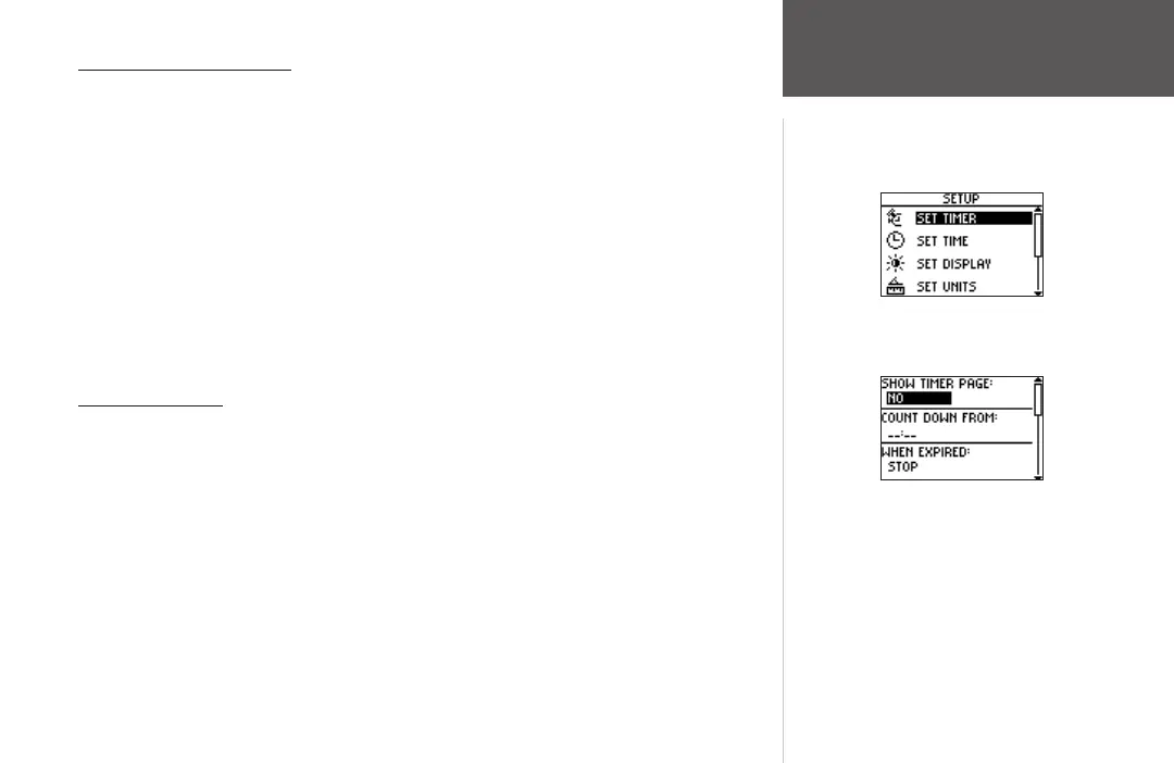 4. Use the UP and DOWN buttons to highlight the field below ‘SHOW TIMER PAGE’ and
