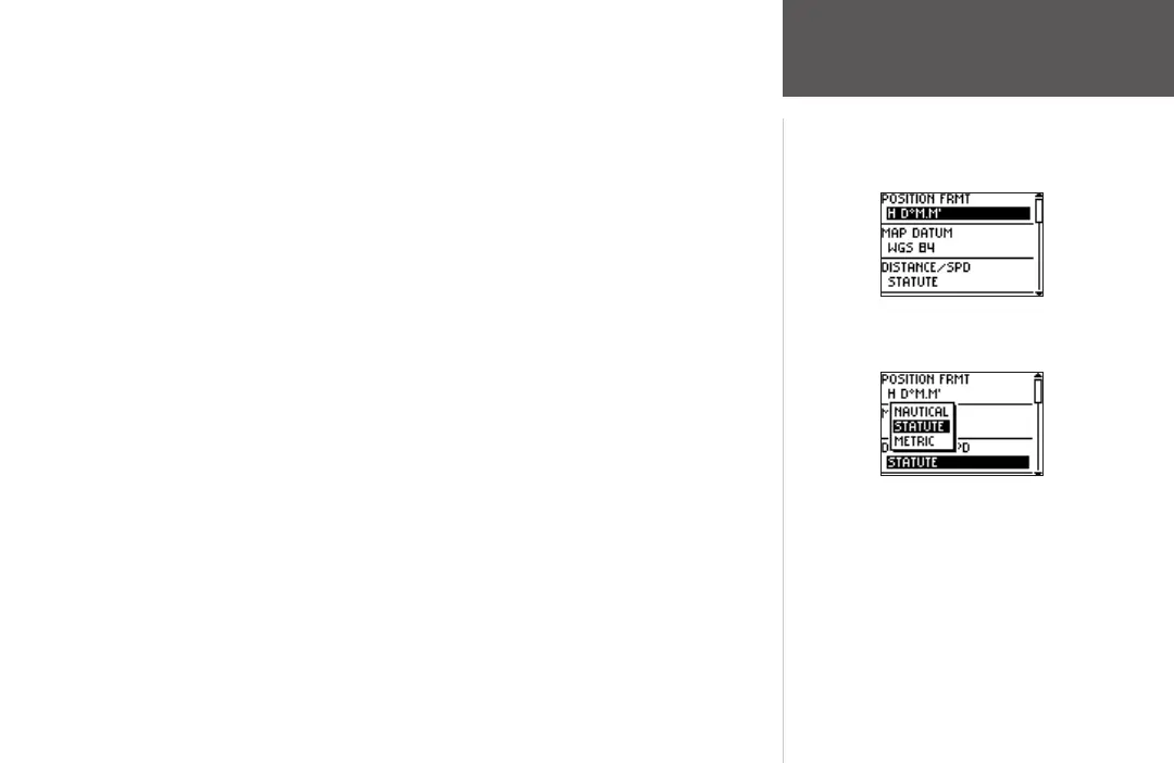 3. Press the UP or DOWN button to highlight the specific unit (‘Distance/Spd’, Elevation’,
