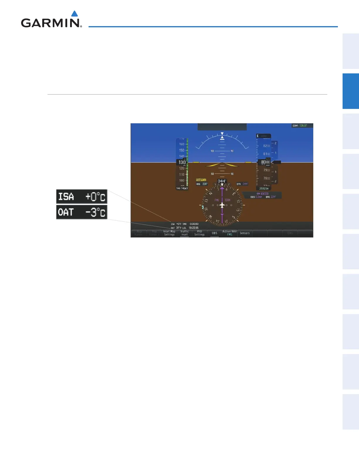 are displayed to the left of the HSI on the PFD. Both are displayed in degrees Celsius (°C).