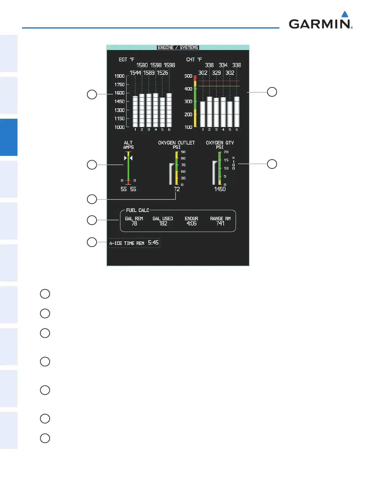 For each cylinder, the exhaust gas temperatures are shown in degrees
