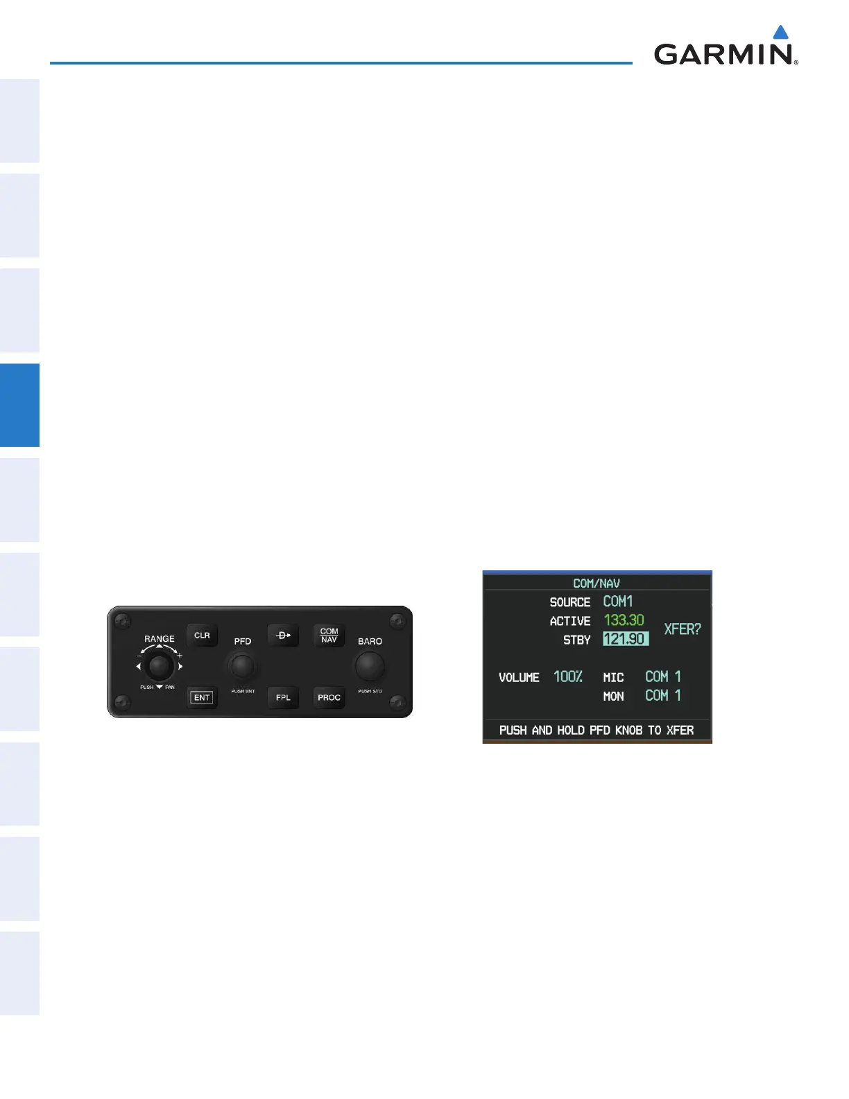3) Turn either PFD Knob to select the desired COM.