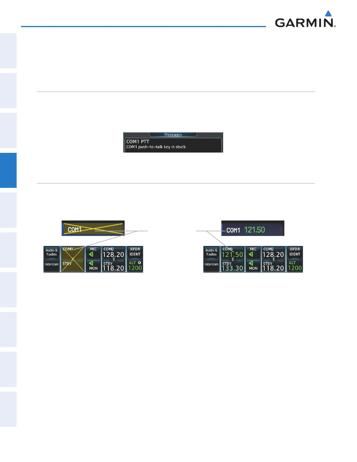 continuous operation. An alert appears on the Touchscreen Controller to advise the pilot of a stuck microphone.