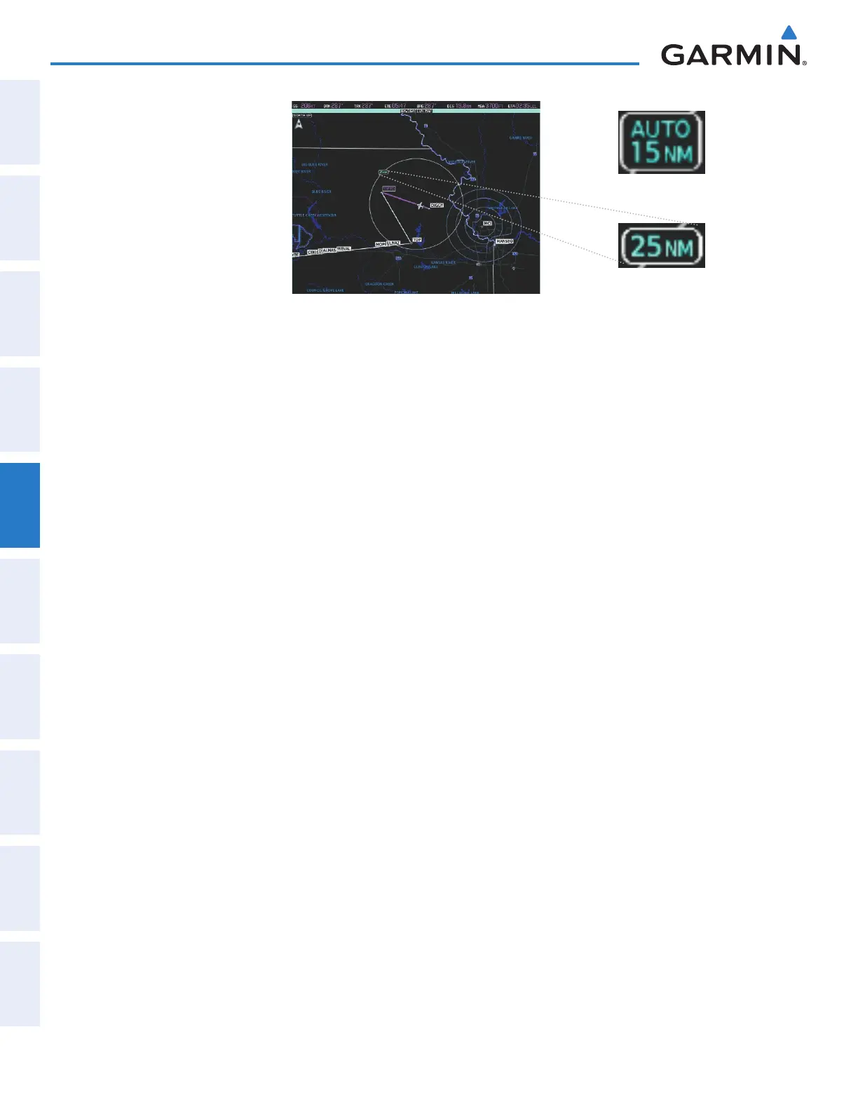 The auto zoom function can be turned on or off independently for the PFD and MFD. Control of the ranges