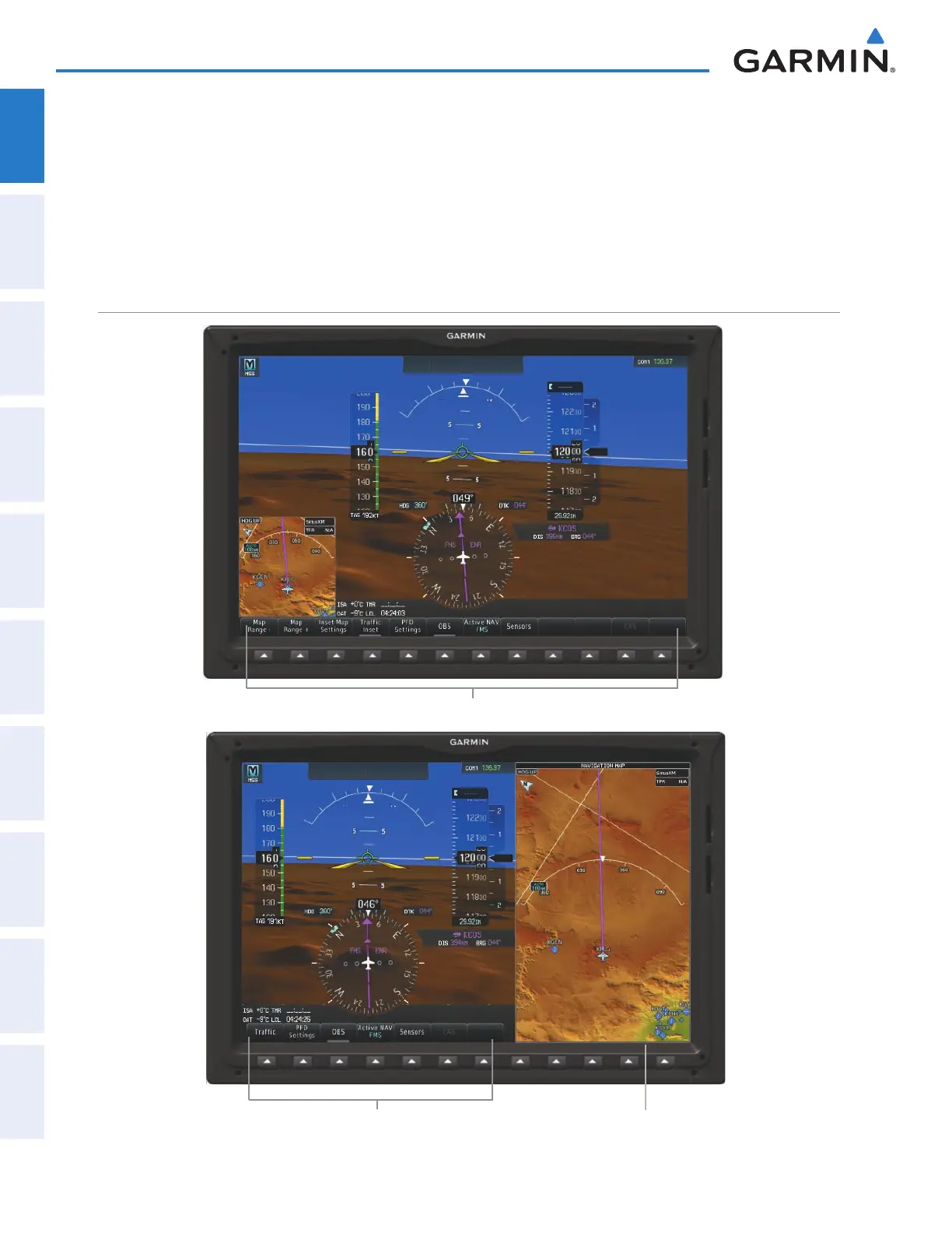 Figure 1-5 PFD Softkeys in Full Mode and Split Mode