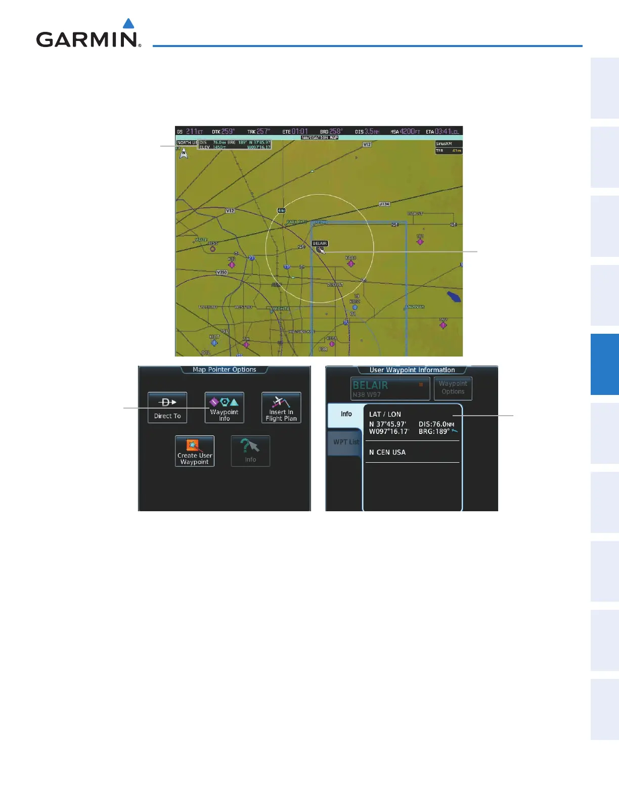the name was not originally displayed on the map). When a User Waypoint is highlighted on the map display,