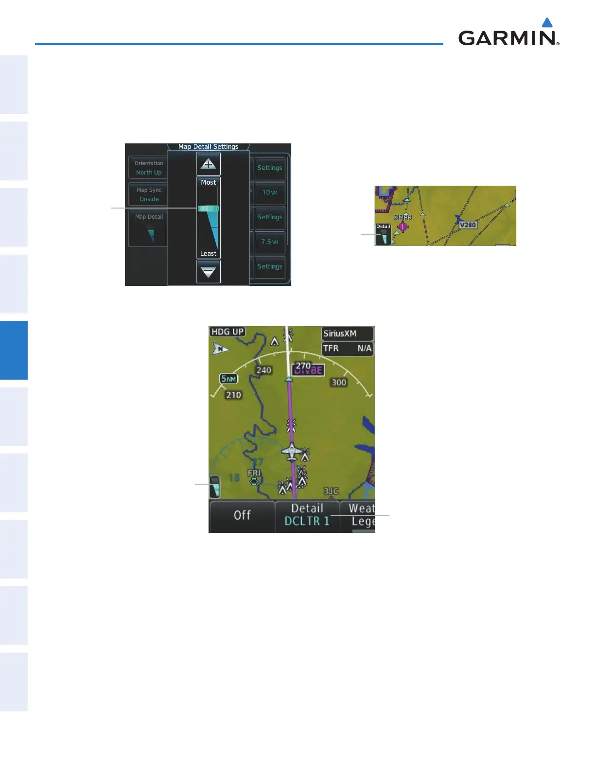 The declutter feature allows the pilot to progressively step through four levels of map detail. The navigation