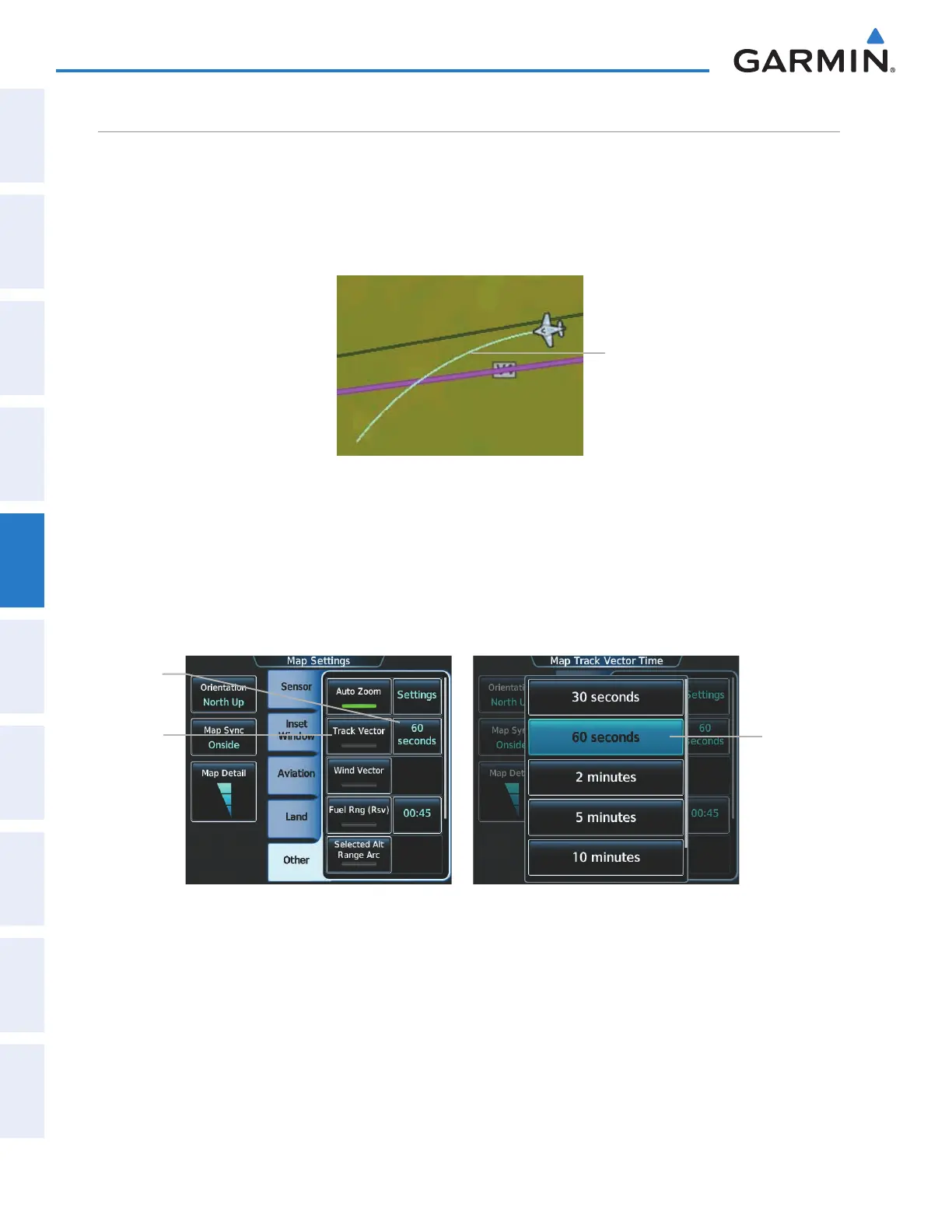 The Navigation Map can display a track vector that is useful in minimizing track angle error. The track vector