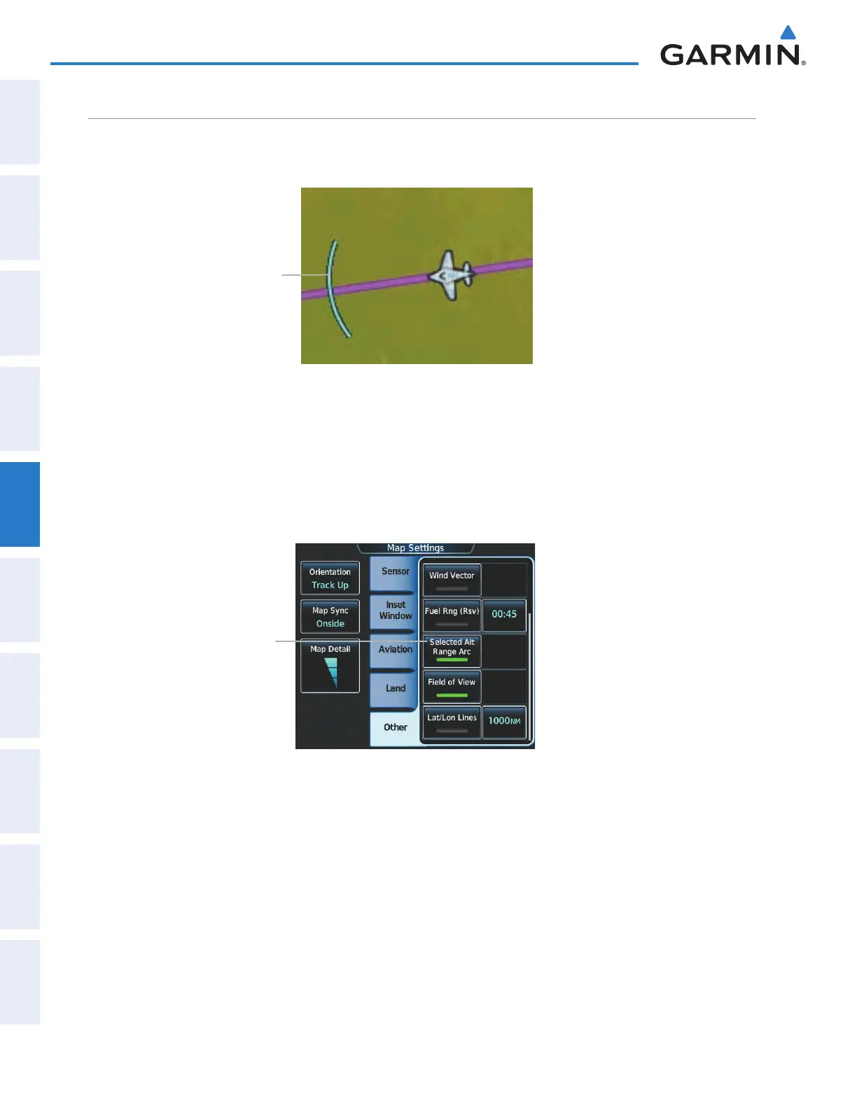 Figure 5-32 Map Settings Screen -Selected Altitude Intercept Arc Setup