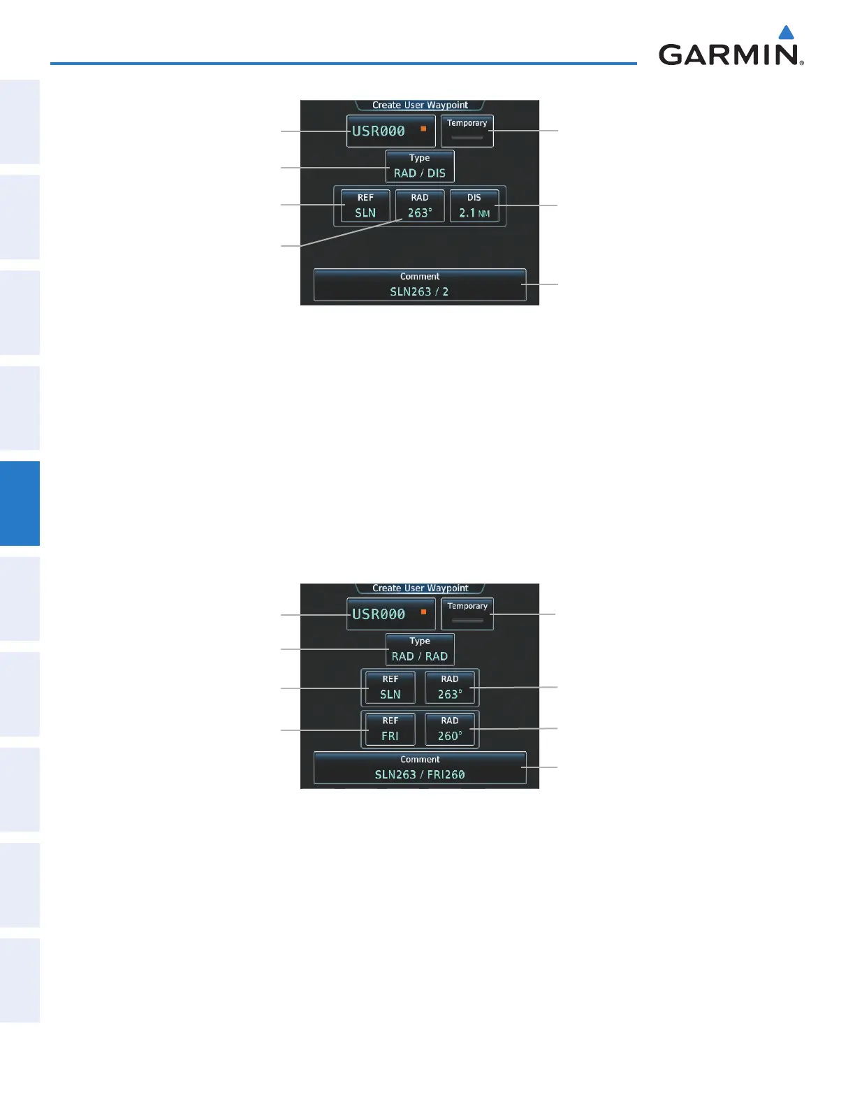Figure 5-65 Create User Waypoint Screen (defined by radials from two waypoints)