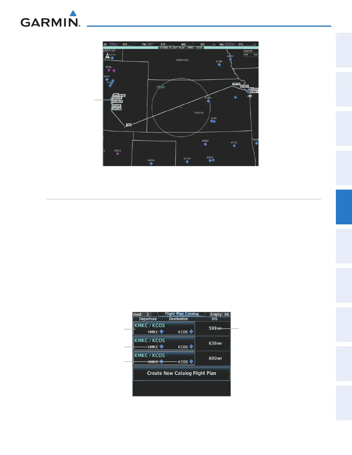 2) Touch the Catalog Button to display the Flight Plan Catalog Screen. The flight plan information is displayed