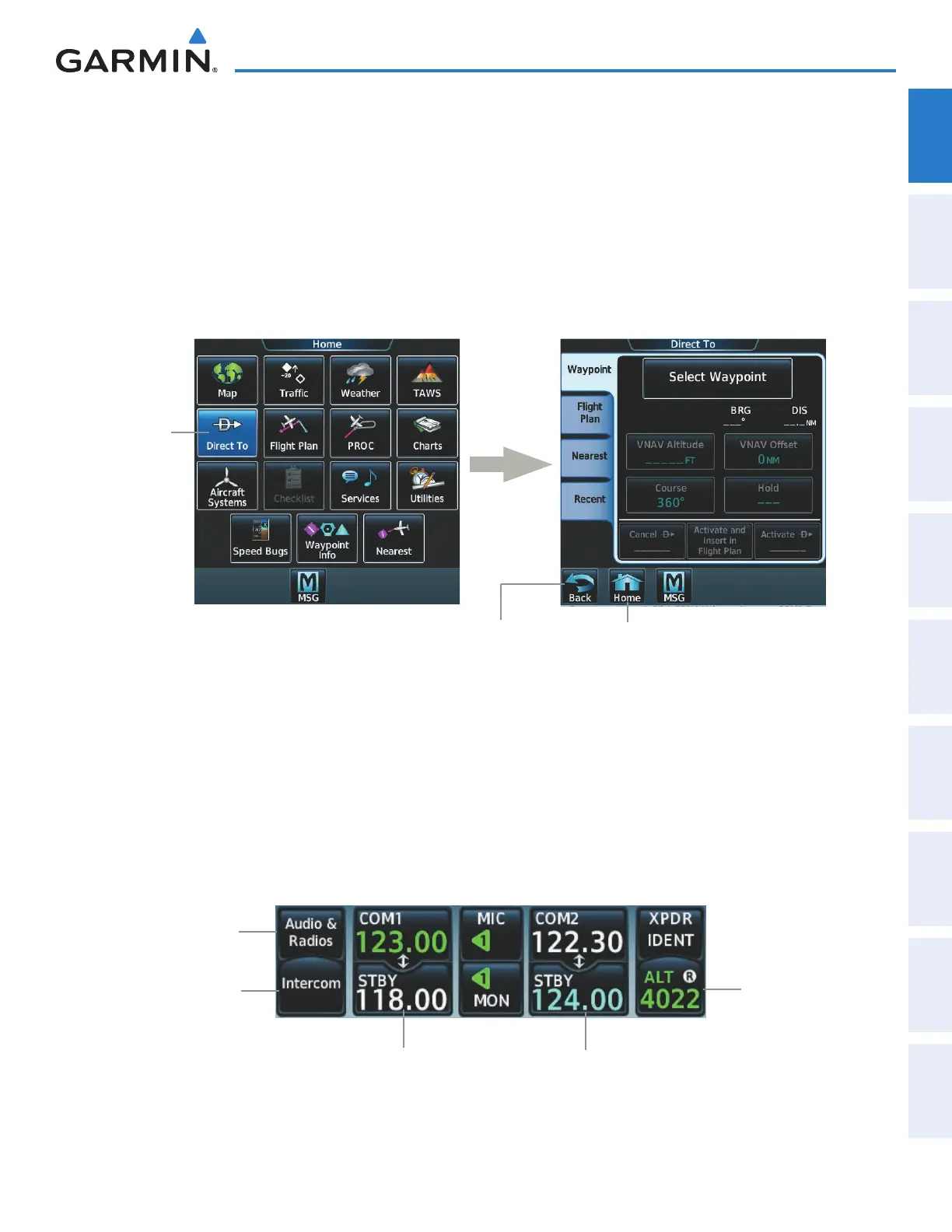 by touching the Home Button in the Button Bar below the screen area. Procedures in this Pilot’s Guide generally