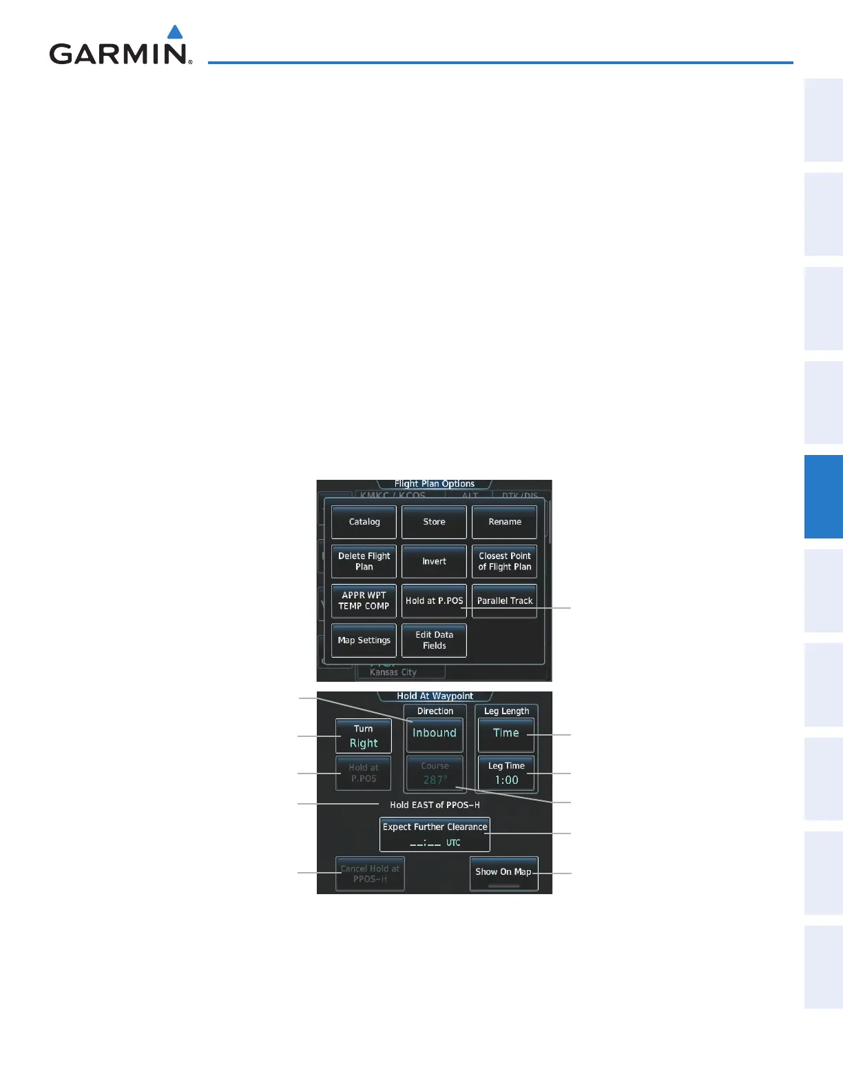 2) Touch the Hold at P.POS Button. The Hold at Waypoint Screen is displayed.