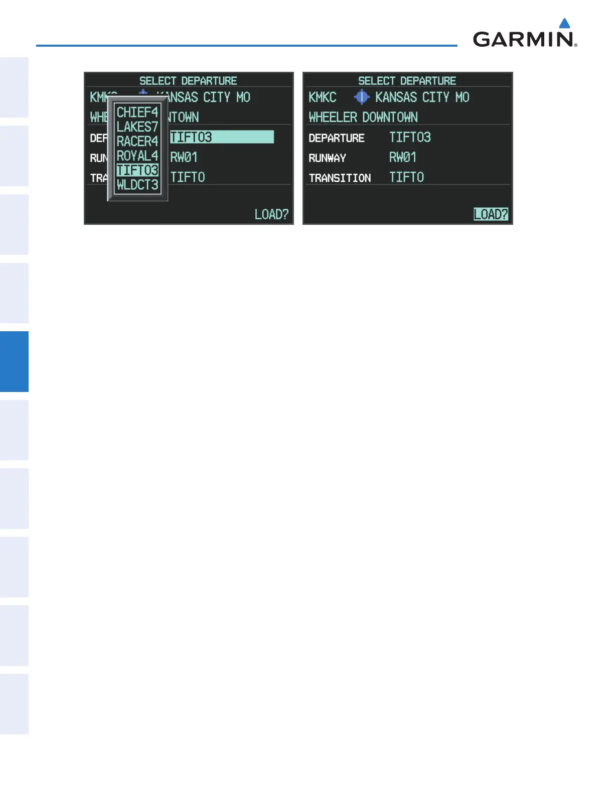 3) Press the CLR Key. A confirmation window is displayed listing the departure procedure.