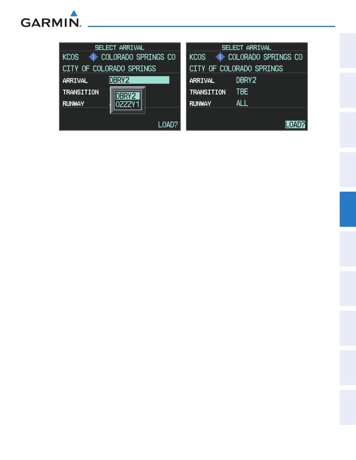 3) Press the CLR Key. A confirmation window is displayed listing the arrival procedure.