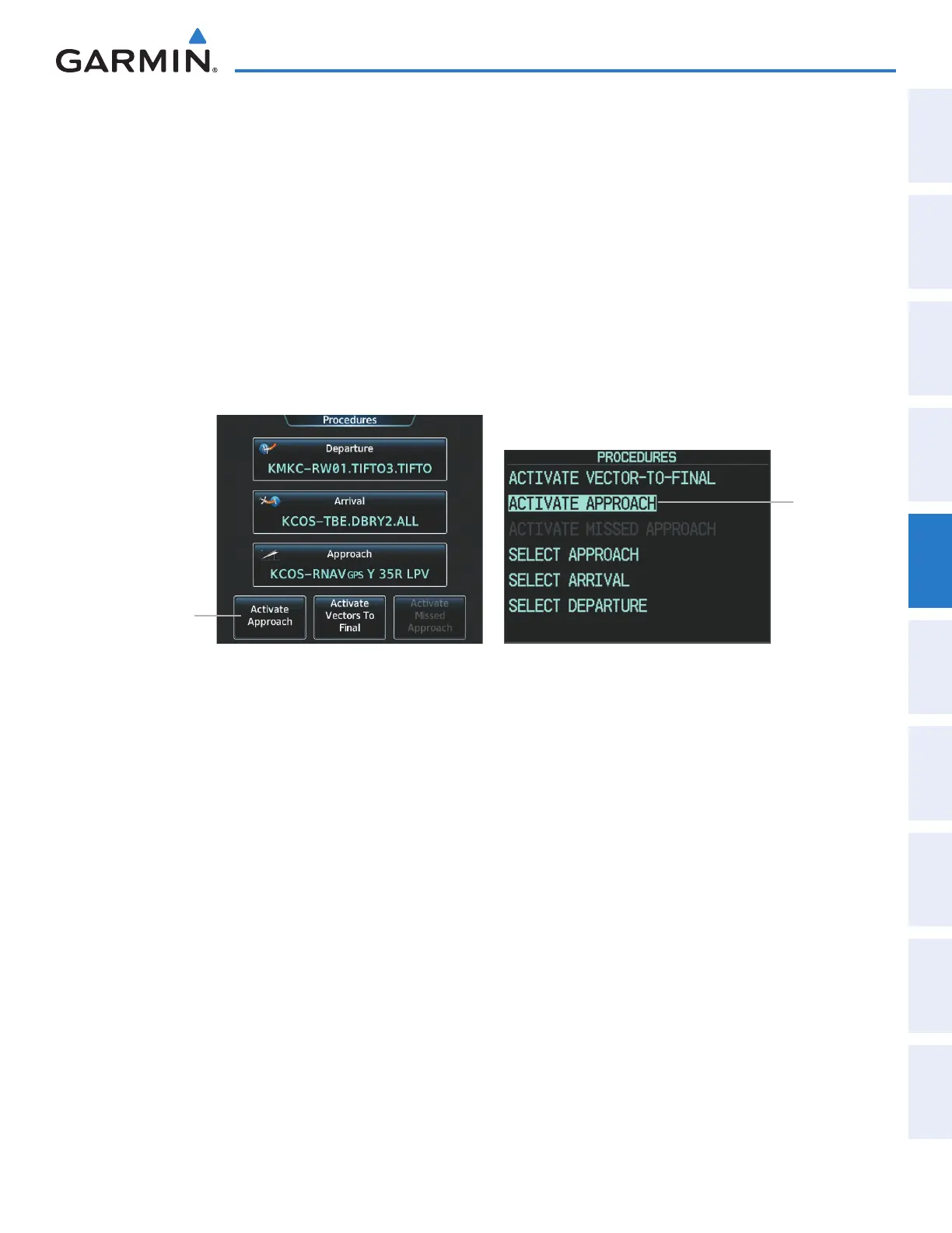 A previously loaded approach can be activated from the Procedures Screen.