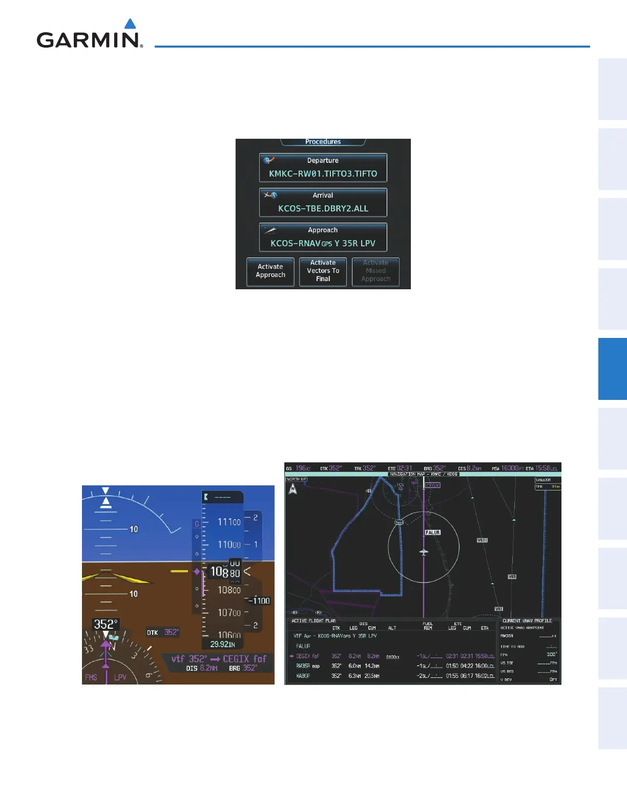 d) The active leg is now the established course direct to CEGIX faf (see Figure 5-201). The flight phase changes