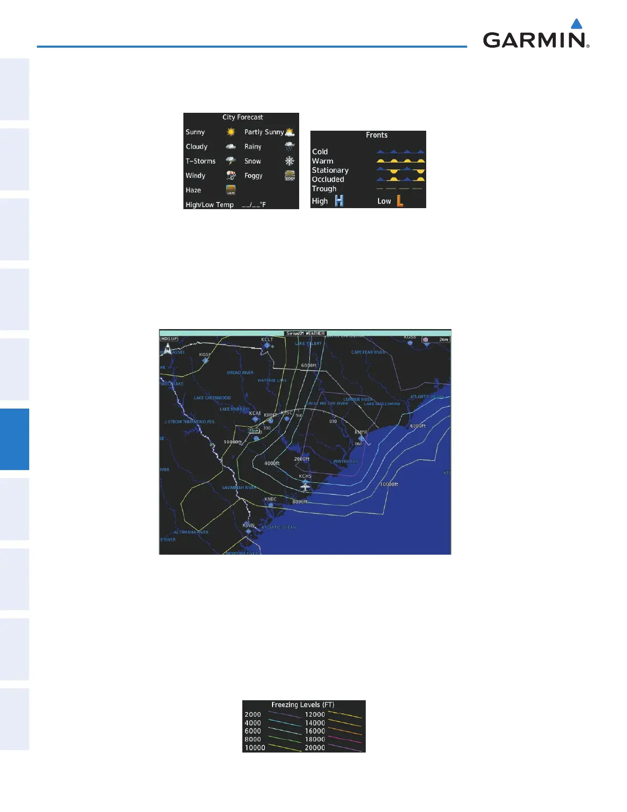 Freezing Level data shows the color-coded contour lines for the altitude and location at which the first