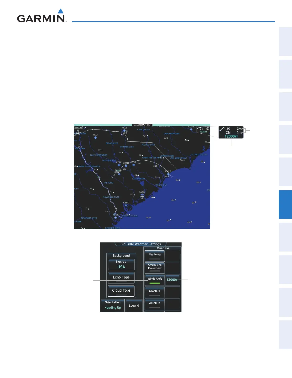 Displaying the Winds Aloft Weather Product (SiriusXM Weather Pane):
