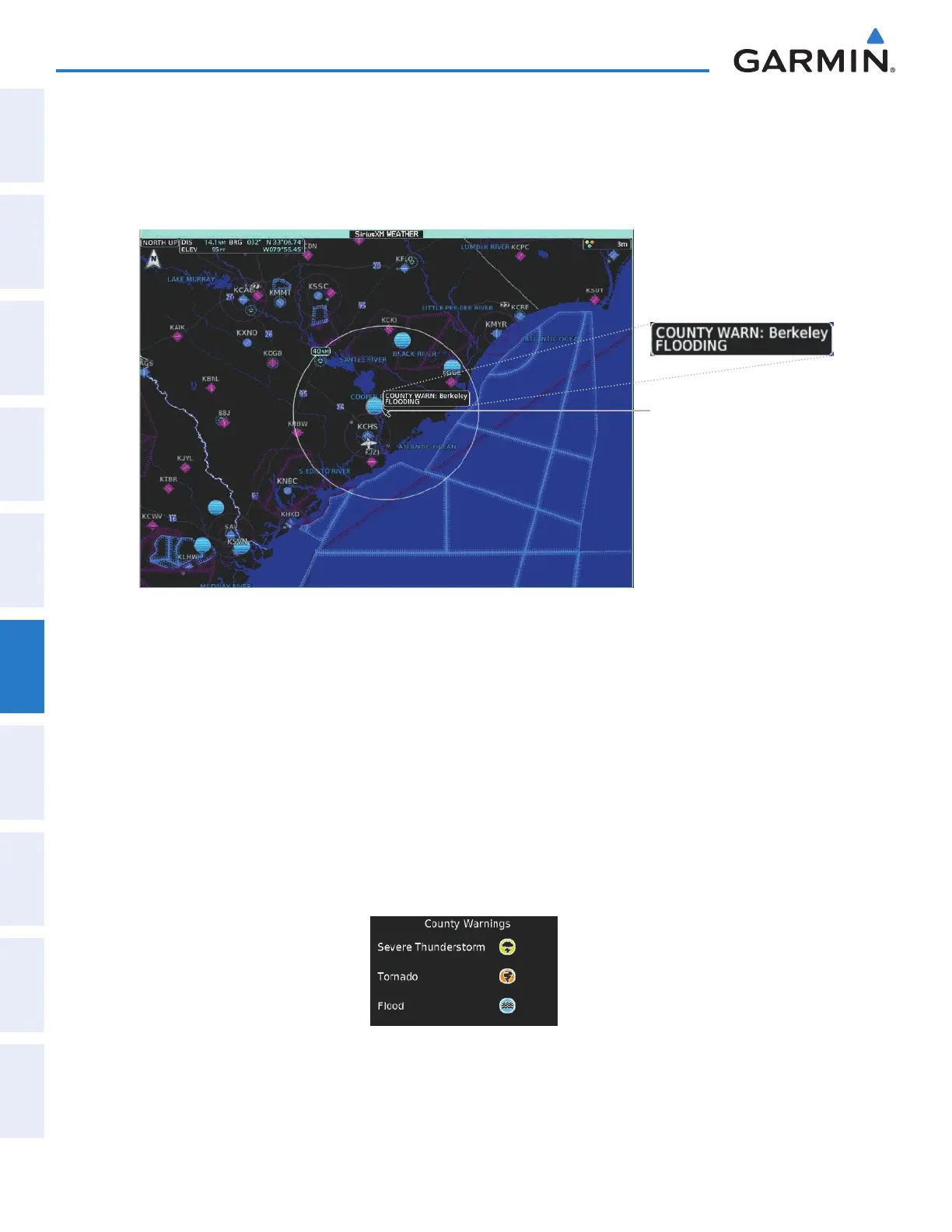 the Joystick to highlight a selected County Warning. County Warning information appears in a box near the