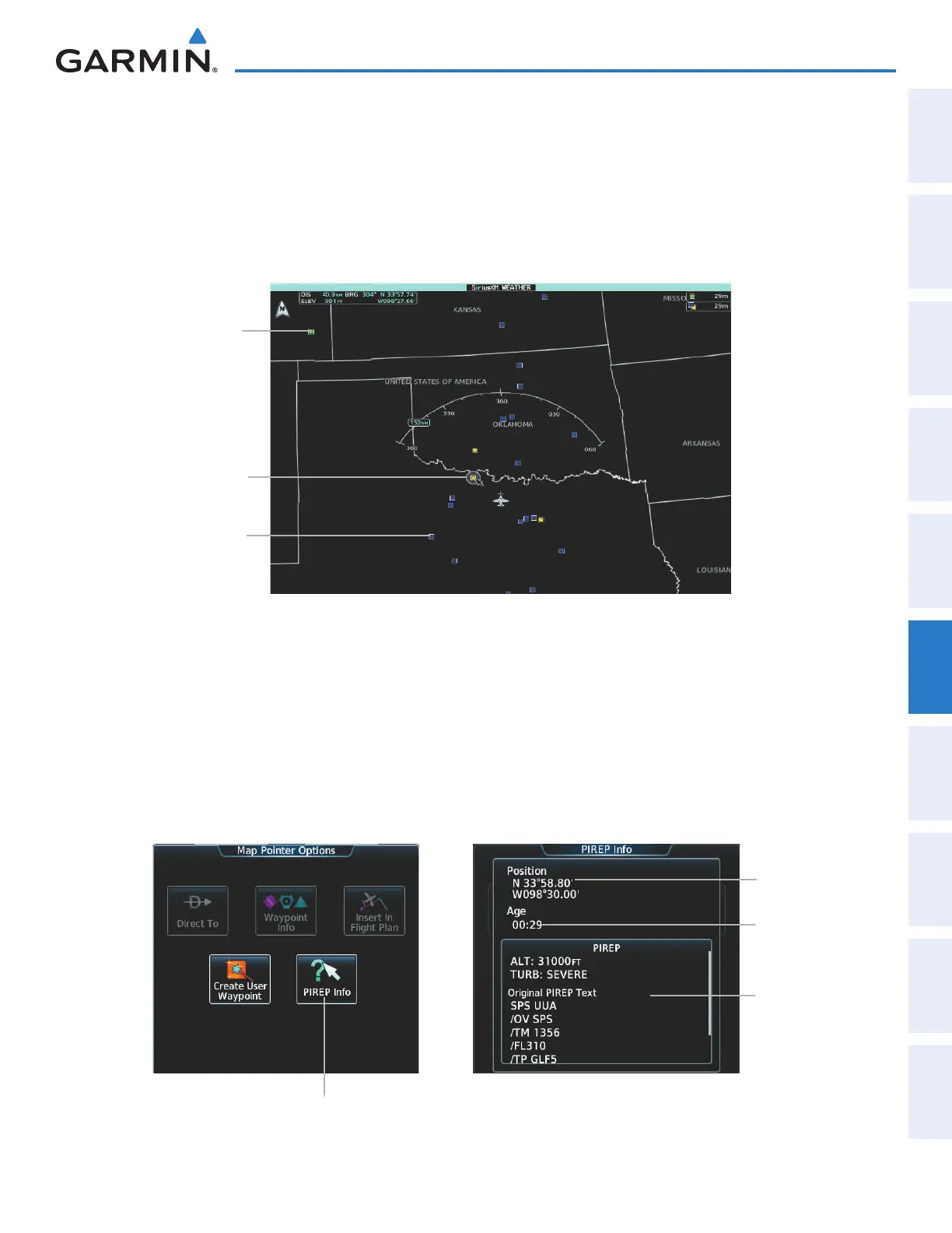 3) To view PIREP/AIREP text, push the joystick to activate the map pointer and move the pointer with the joystick