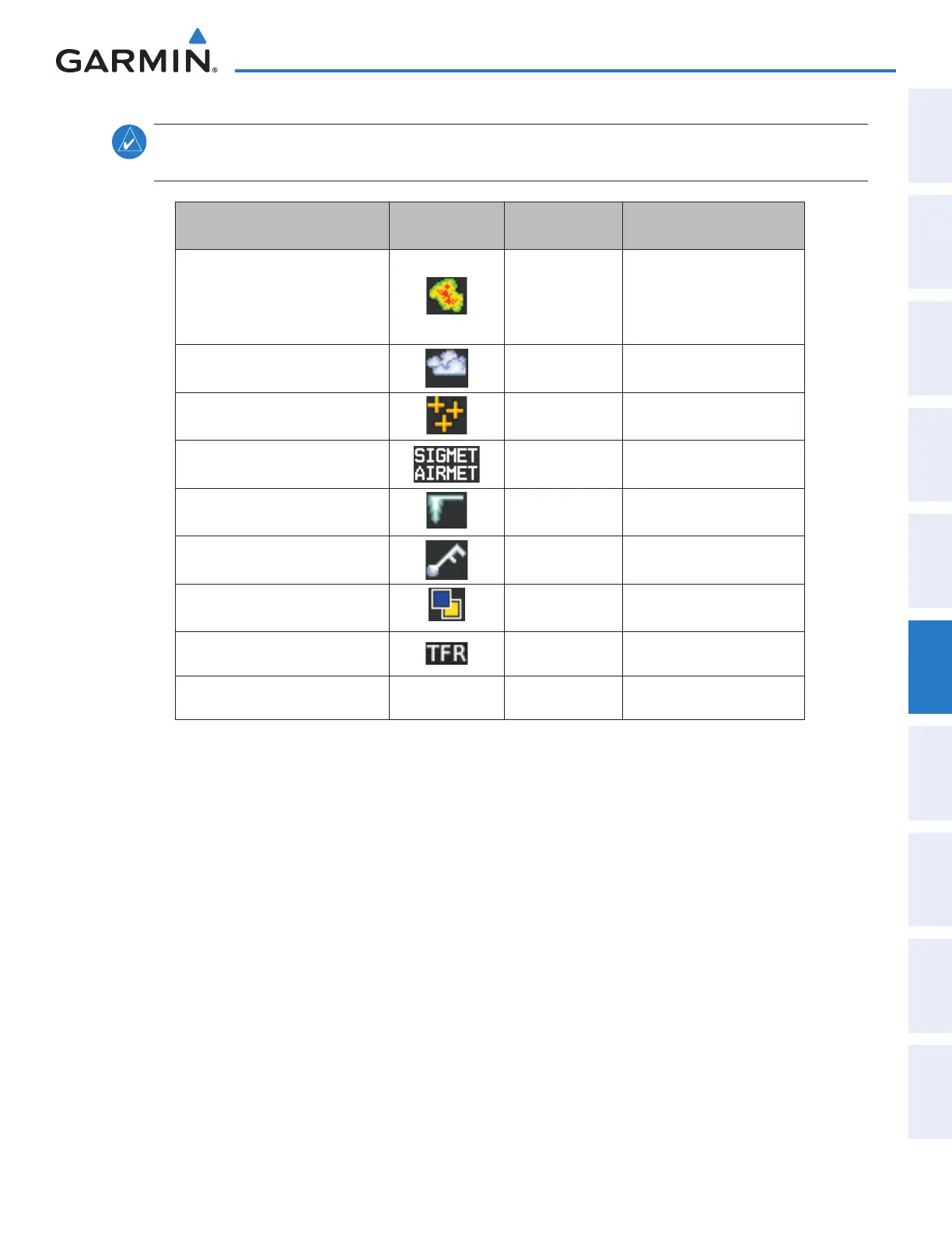 Table 6-5 Garmin Connext Weather Product Symbols and Data Timing
