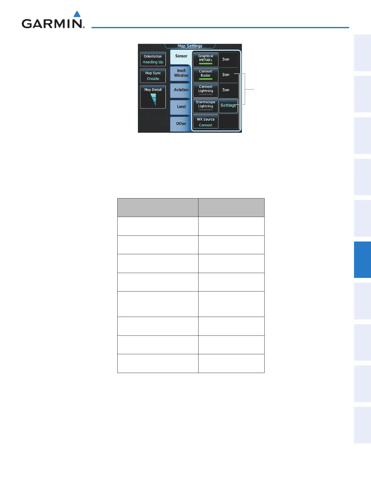 Table 6-7 Corresponding Data Link Weather Product Settings