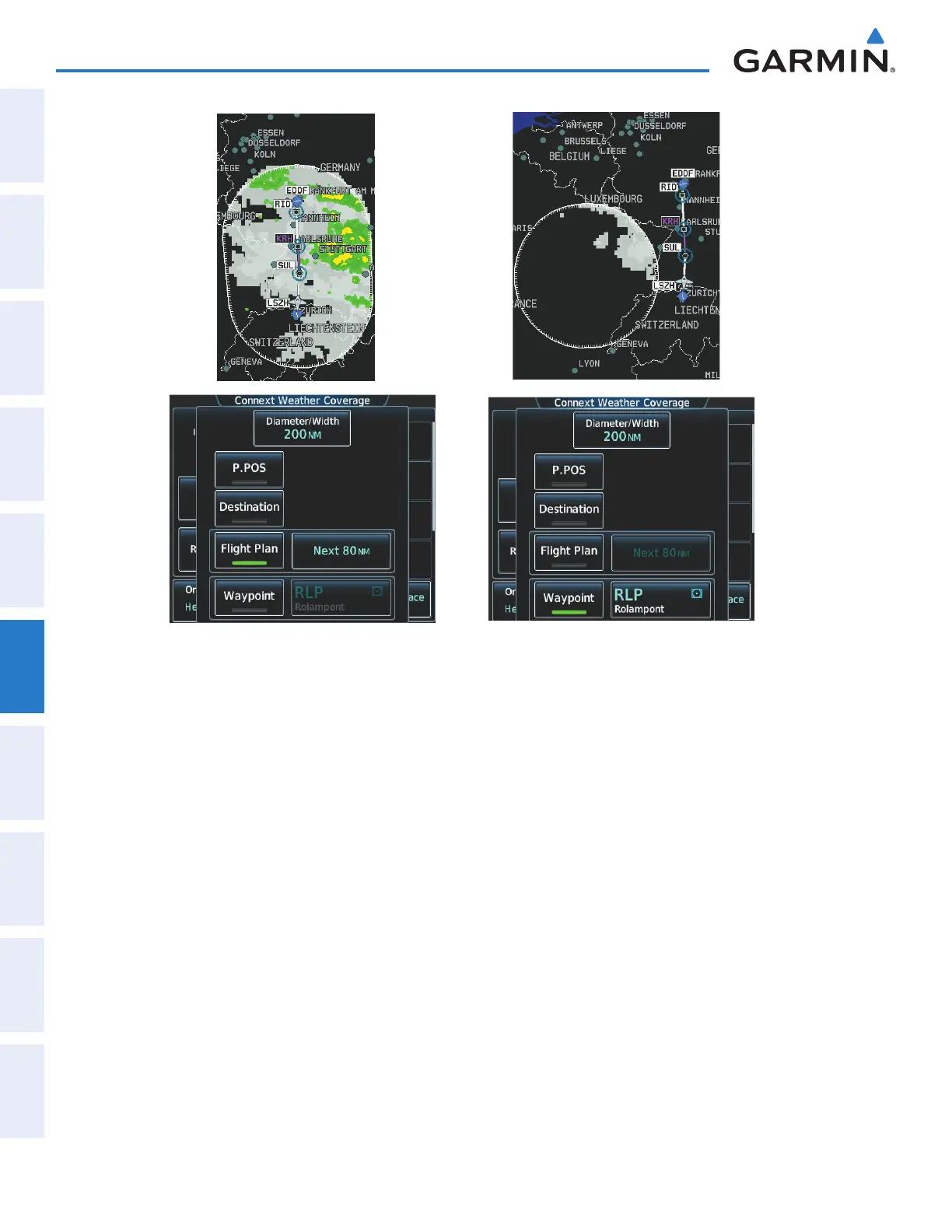 Figure 6-54 Connext Weather Coverage Options based on Flight Plan and Waypoint Selections