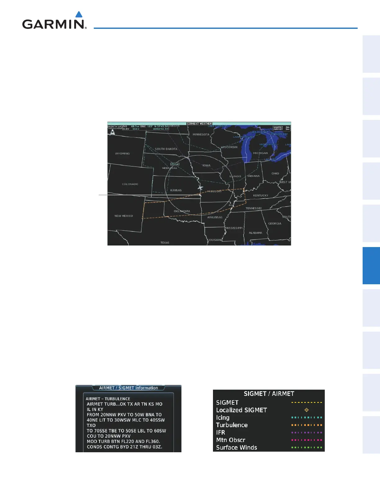 weather such as severe or widespread thunderstorms. A localized SIGMET can be displayed when significant