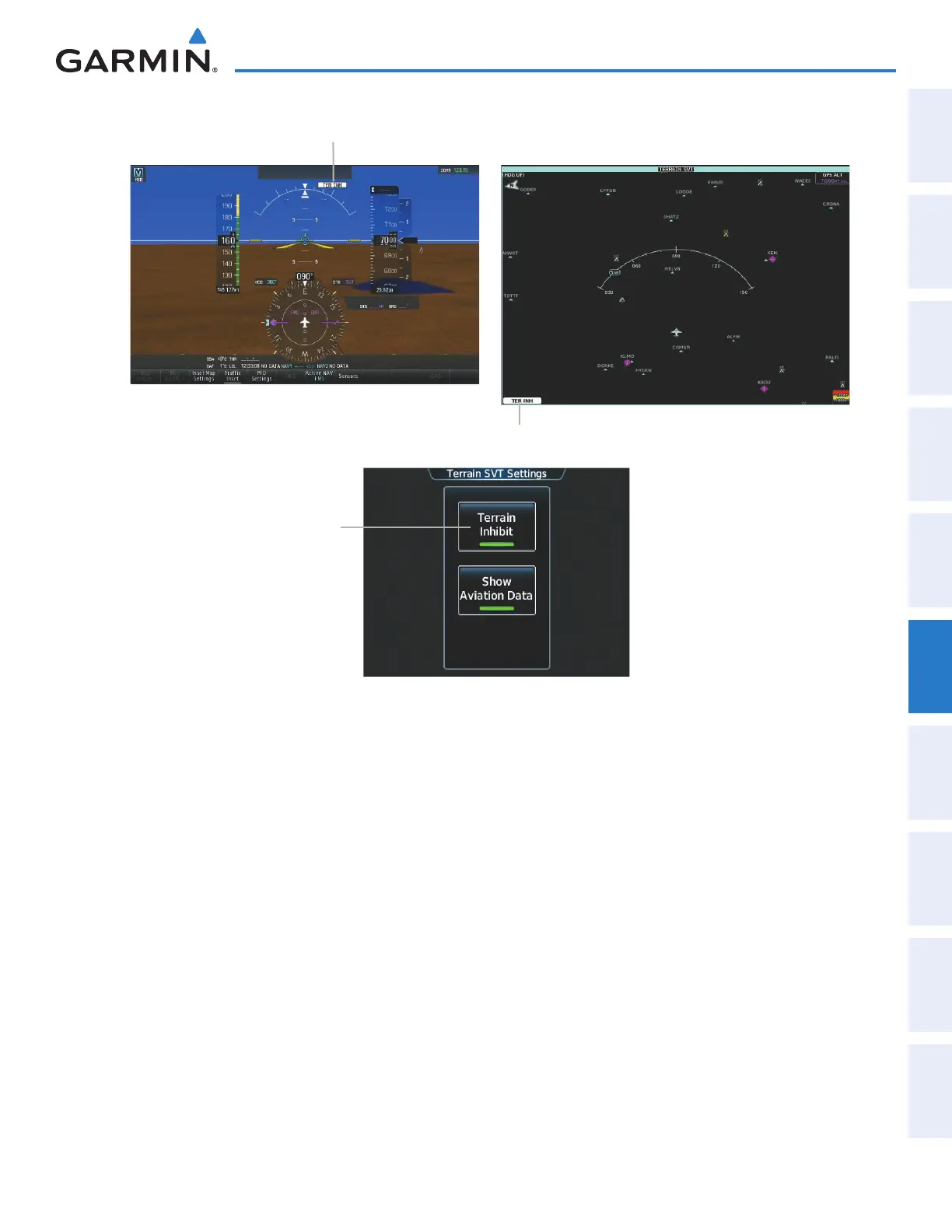 3) Touch the Terrain Inhibit button. When the annunciator on the button is green, Terrain SVT alerting is
