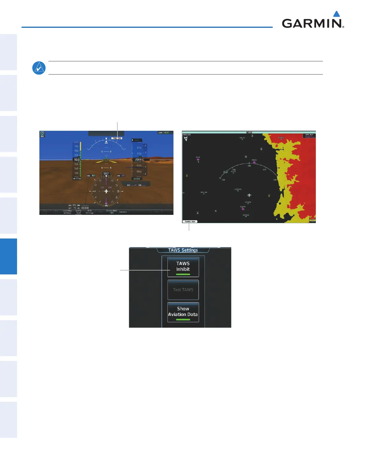 NOTE: The TAWS Inhibit function only inhibits FLTA and PDA alerts.