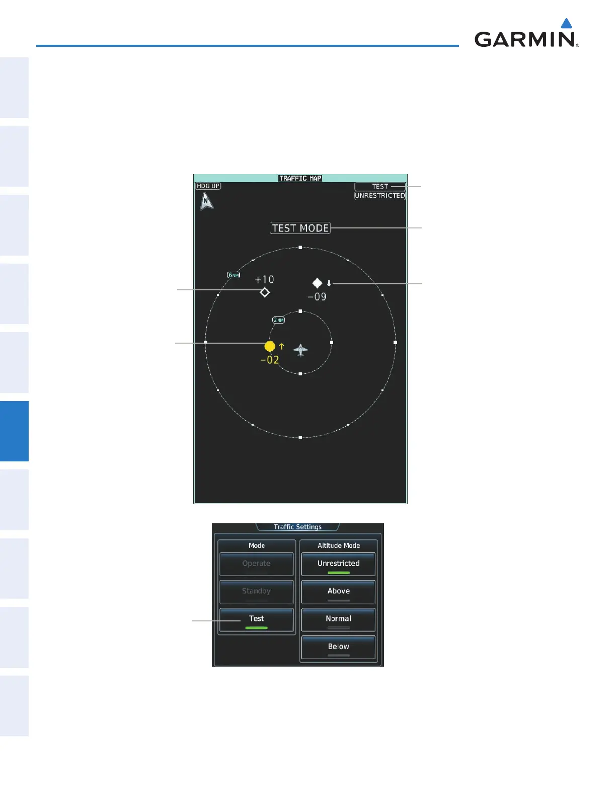 5) Turn the Joystick as necessary to set the Traffic Map Pane range so the outer range ring indicates ‘6 NM’. This