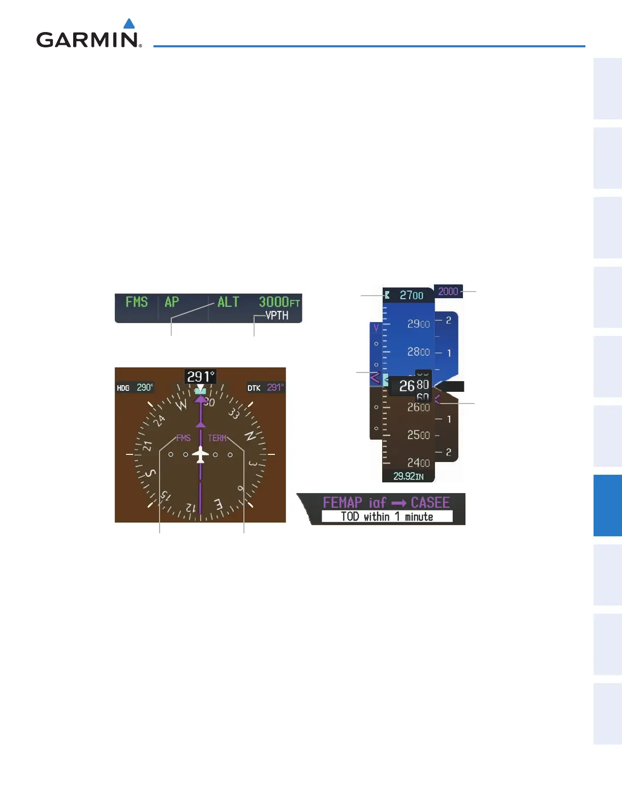 Box and the “Vertical track” voice message, VNAV indications (VNAV Target Altitude, vertical deviation, and