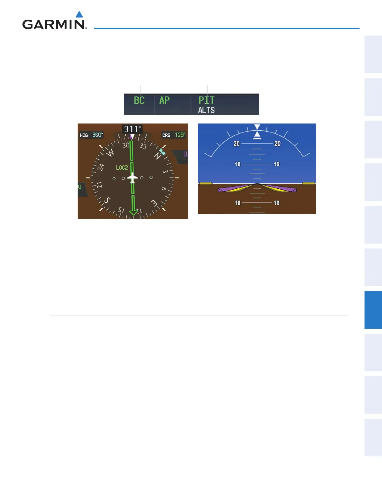 aircraft does not reset any reference data while in Backcourse Mode. The autopilot guides the aircraft back to