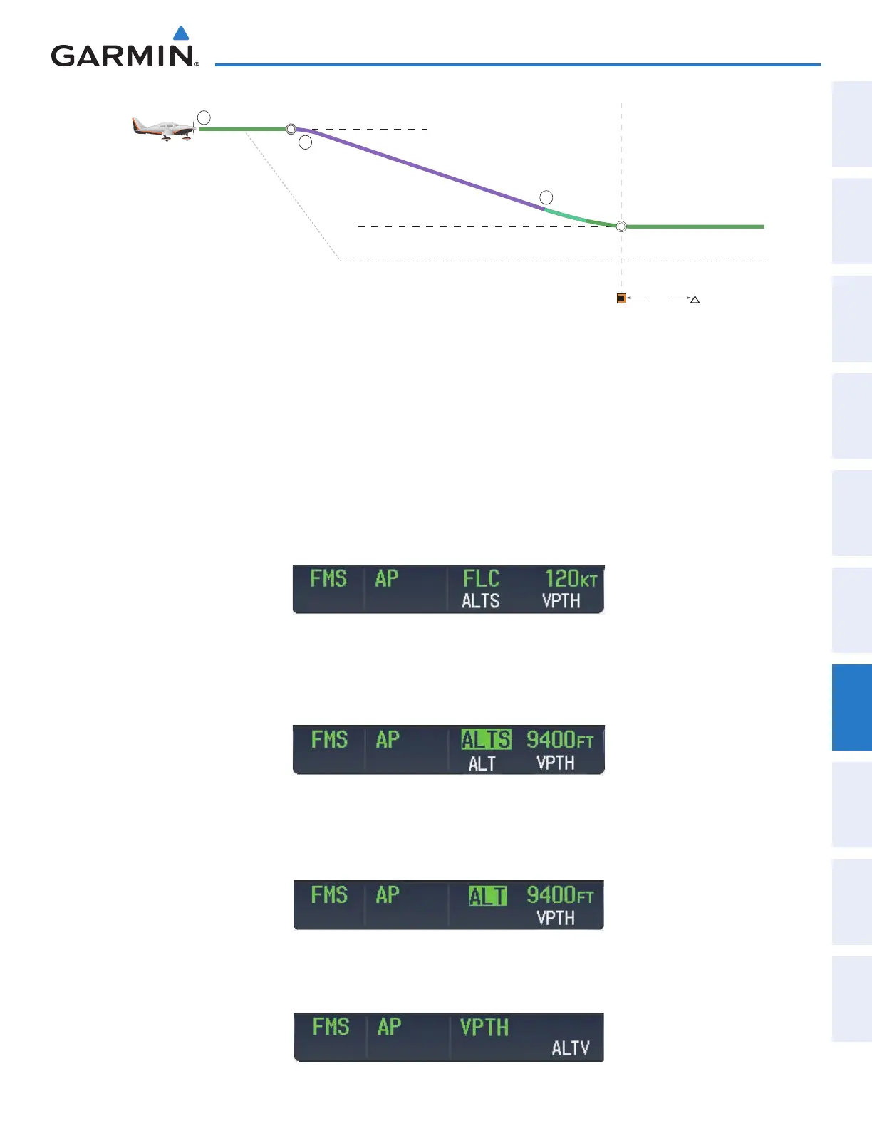 b) Press the FLC Key before the planned TOD during an altitude hold while VPTH is armed. The Airspeed Reference