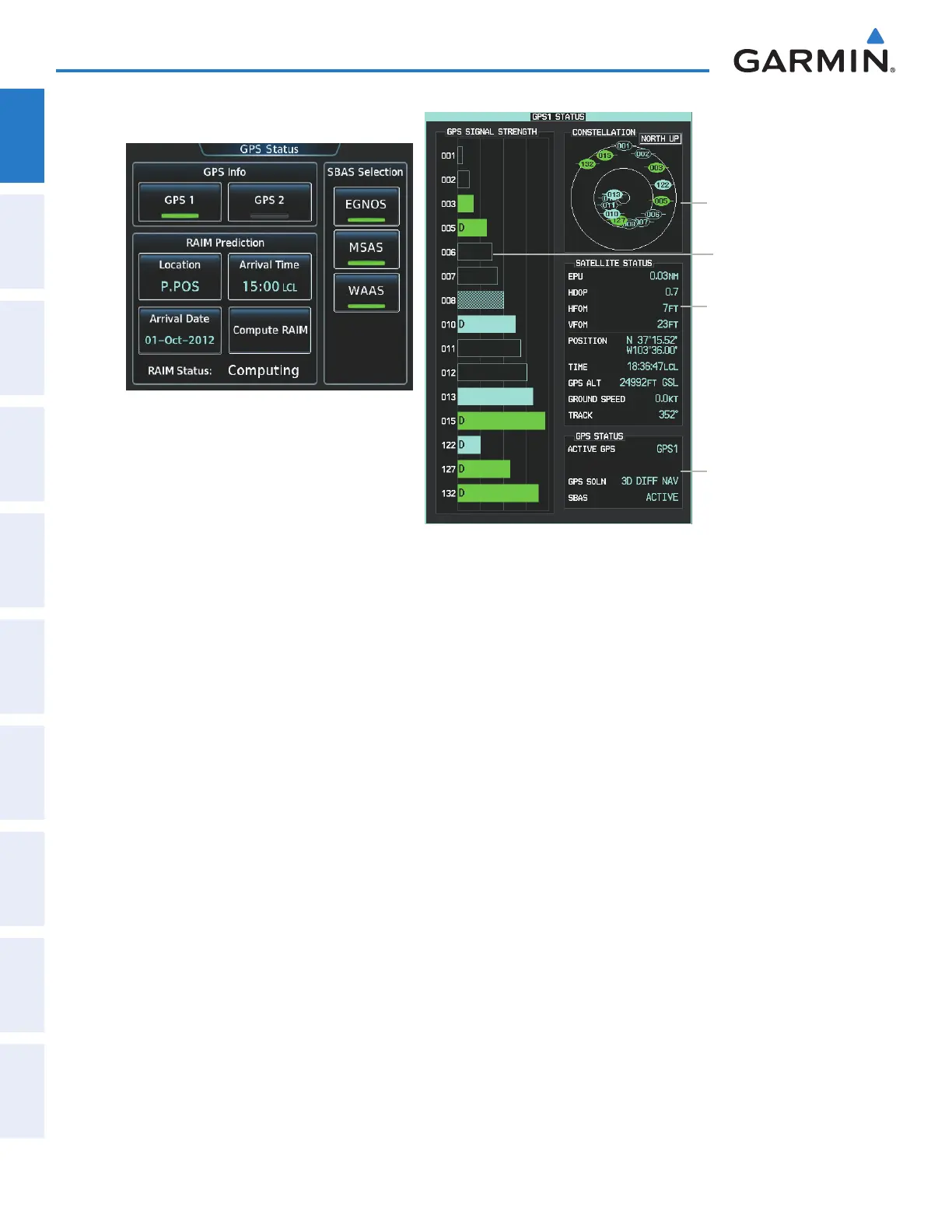 selected on. The system displays the GPS 1 STATUS Pane.