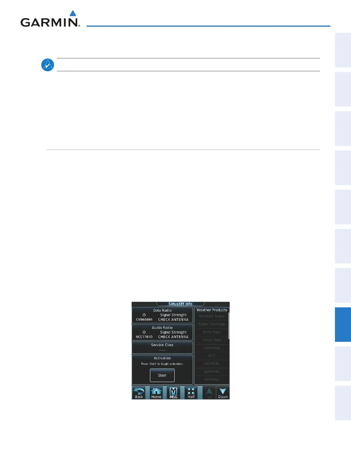 NOTE: Refer to the Hazard Avoidance Section for information and activation of SiriusXM Weather products.